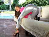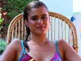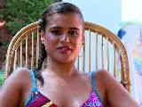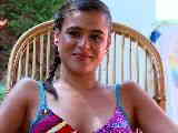 Horny little métis Alice Axx stripping at the pool