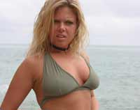Pretty blonde with big boobs Electra doing a strip on the beach