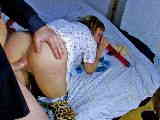 Brune doing a striptease on her bed