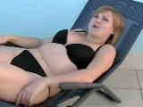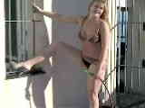Nice blonde with big boobs Eva Ross dancing and stripping on the terrace