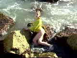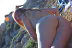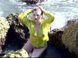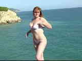 Lovely blonde with big boobs Eva Ross removing clothes in the rocks