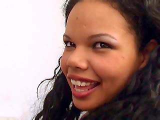 Nice teen with big tits Jana Roberth removing clothes on the sofa