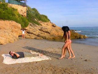 Lovely teen arab Julia De Lucia doing a hot striptease on the beach