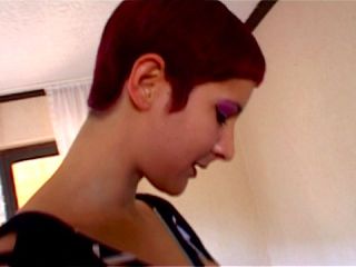 Pretty redhead Katia doing a hot striptease alone on her webcam