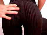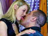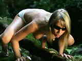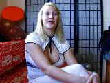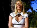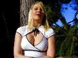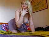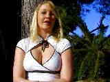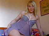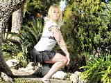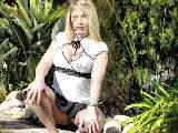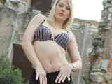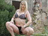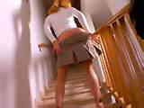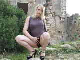 Lovely blonde Lady Margaux removing clothes in the stairs