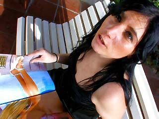 Pretty young brunette Lorena Fox doing a hot striptease alone on her webcam