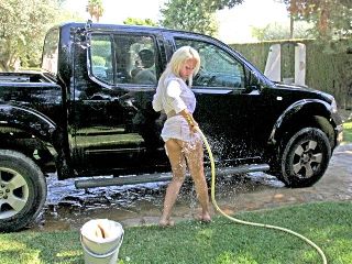 video Horny blonde with big tits Louana doing a hot striptease live on the webcam