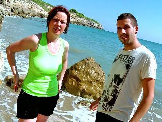 Horny mature with big tits Marion Moon doing a hot striptease by the sea
