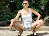 Pretty brunette Megan Hot dancing and stripping alone on her webcam