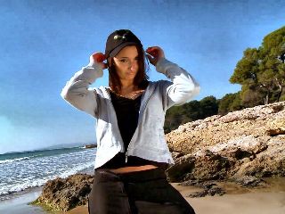 Beautiful brunette Melyne Leona dancing and stripping alone on her webcam