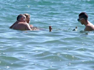 Nice MILF blonde Tamara Val doing a strip on the beach