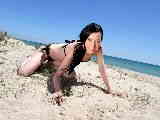 Nice brunette Tania Kiss removing clothes by the sea