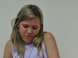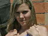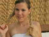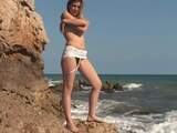 Hot young blonde Yaiza Del Mar doing a hot striptease on the terrace